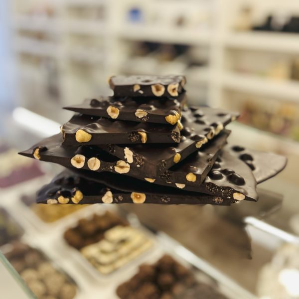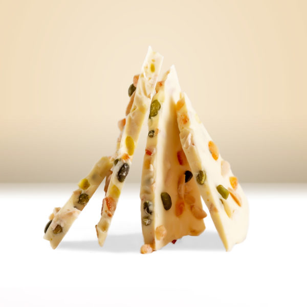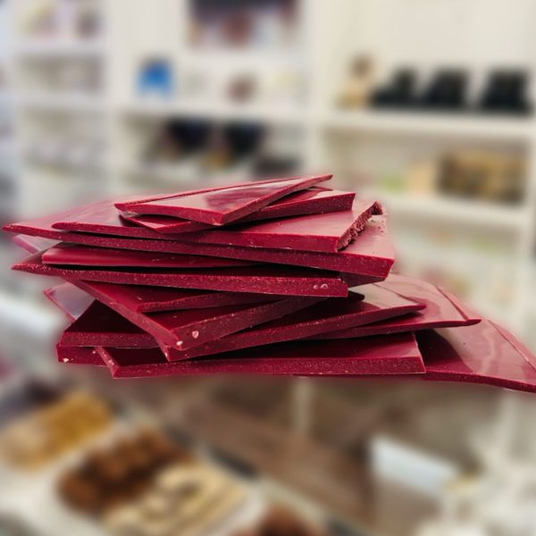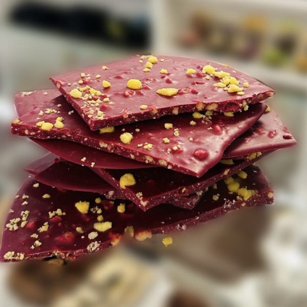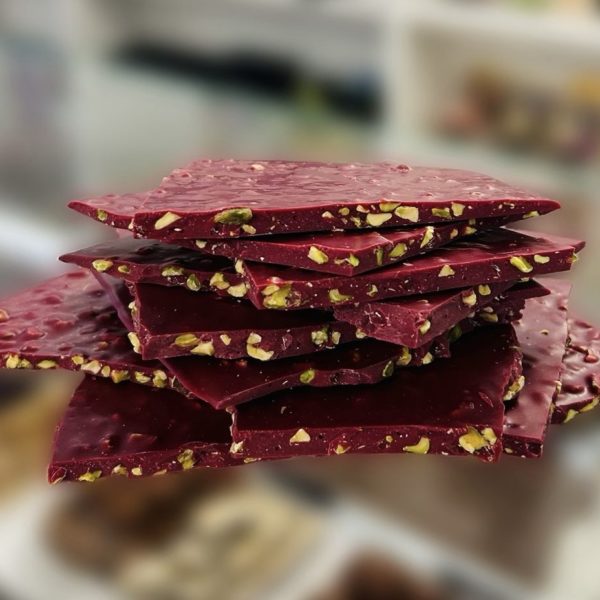 Himbeer Frucht-Kuvertüre mit Pistazien