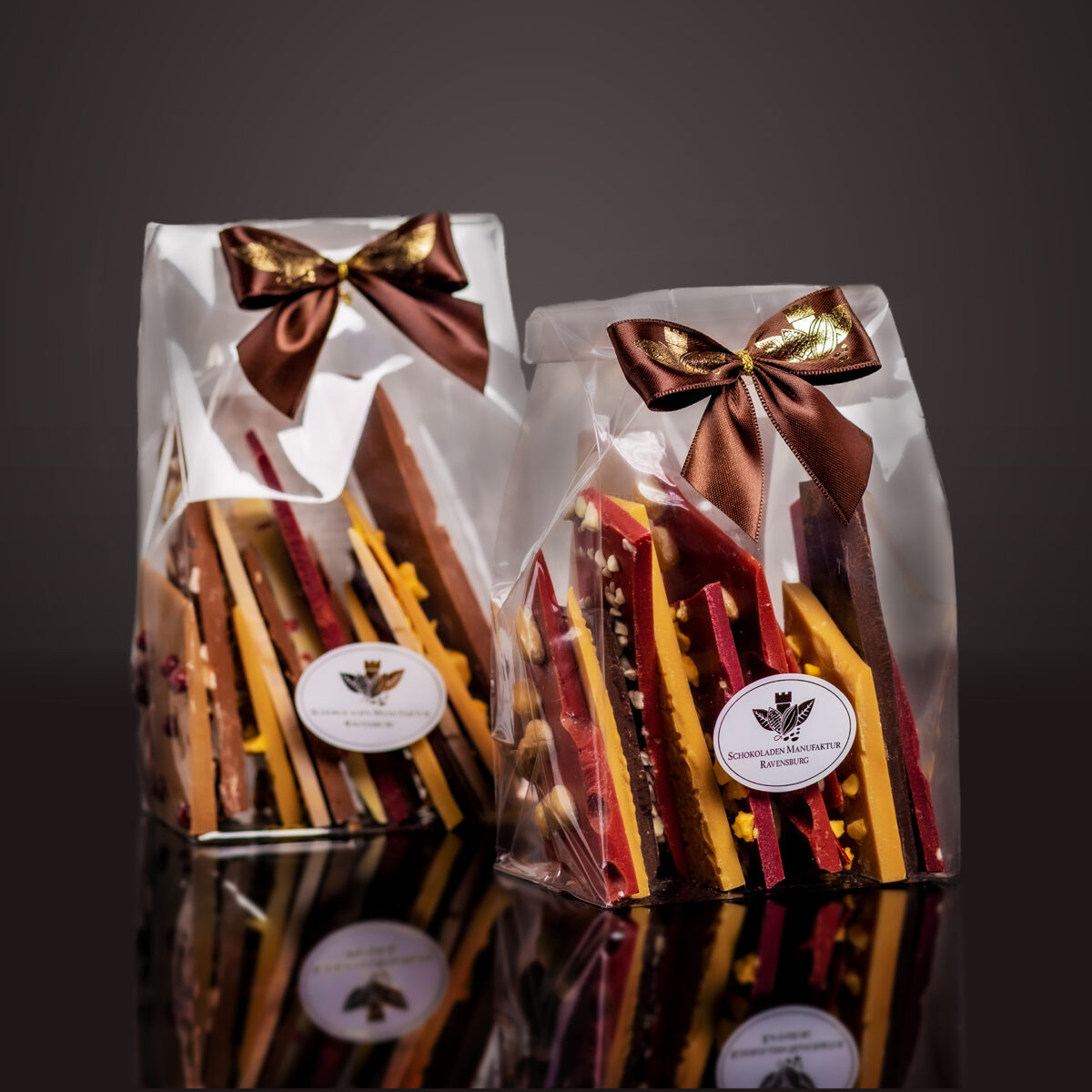 – unser Bestseller – verschiedene bunte Bruchschokoladen-Stücke sortiert.